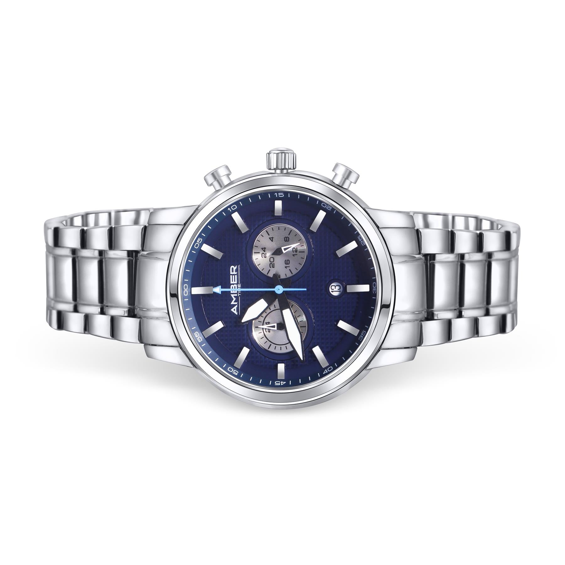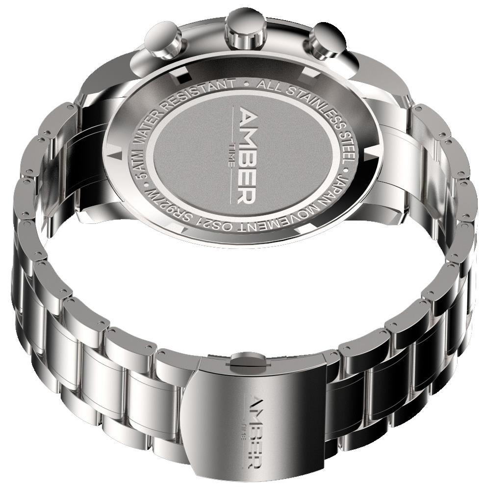 Amber Time Erkek Kuvars Kronograf Saat Paslanmaz Çelik Bant 50m